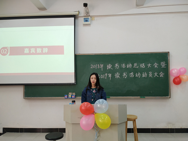 最后,王巍峰老师对2019年读书活动做了动员发言。她表示,2018年已经成为过往,新学期就是新的开始。人无法拒绝的是成长,必须坚持的是读书。两会已经顺利闭幕,在凝心聚力、共创美好新时代的道路上,青年学生身负光荣的使命,面临的是更加艰巨的任务和更加严峻的挑战。无论时代如何变迁,读书是中华民族的优良传统和不变的传承。新时代,我们已开始新起点,踏上新征程,希望大家保持阅读的良好习惯,丰富自己的知识储备,开阔自己的眼界、思维,努力奋斗、不断创新,为开创美好新时代、谱写复兴新史诗砥砺前行!