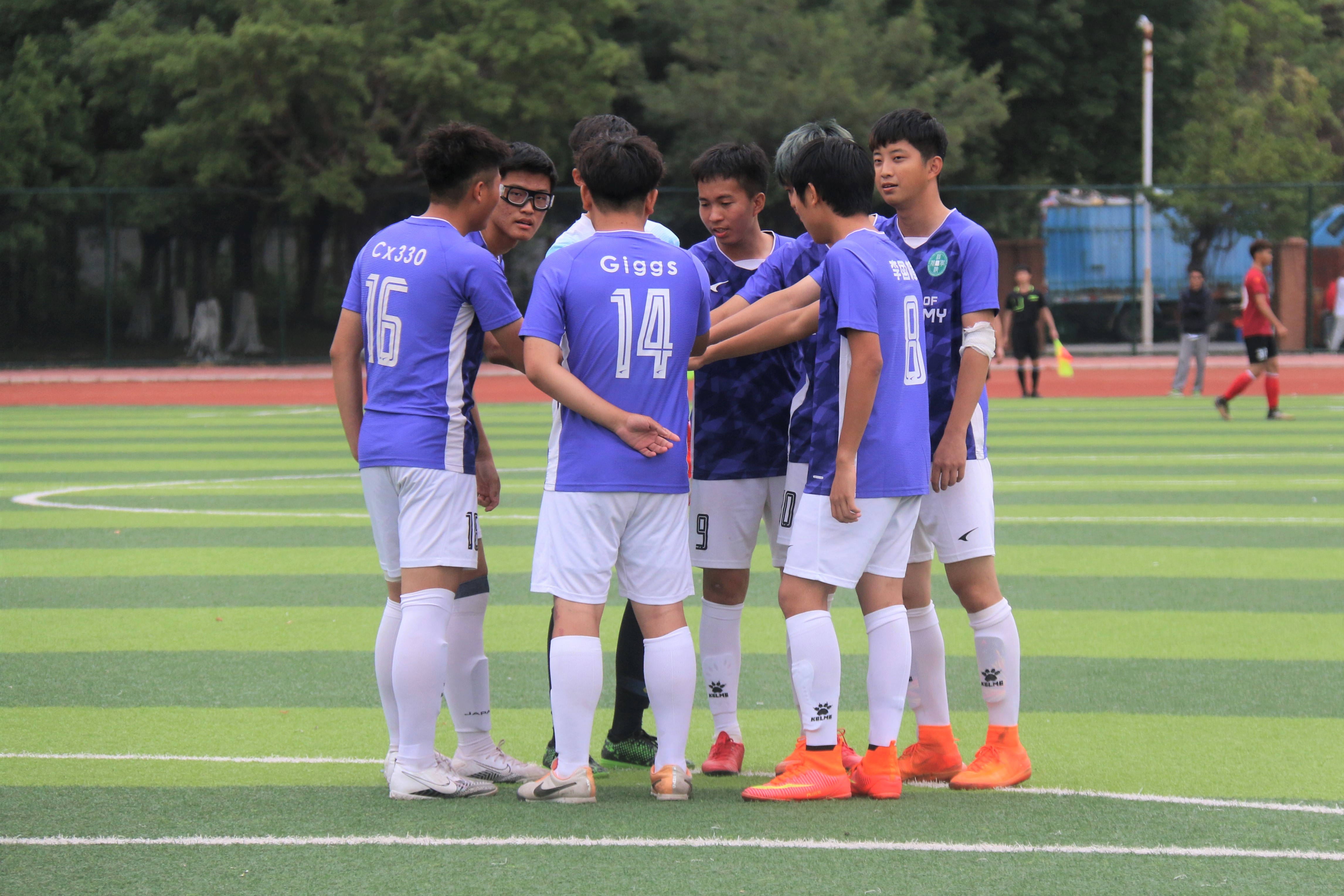 经院足球队赛前加油打气(邓俊轩 摄)