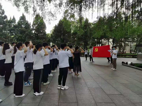 烈士陵园解说员向全体师生介绍了七十二革命烈士的英雄事迹,他讲道:“如果没有先烈抛头颅、洒热血的革命壮举,就没有我们现在的美好生活。”学生代表王伟龙表达了对烈士的追思和崇敬,还述说了当代青年大学生的崇高目标和追求。在党员教师的带领下,师生党员共同朗读了李大钊先生的《青春》,在朗朗诗声中更加坚定了“以我青春之笔,谱写祖国华章”的远大志向。全体师生还面向党旗,重温了入党誓词,在烈士的英灵前发出郑重承诺,不忘初心、牢记使命,不辜负革命先烈的付出与重托。