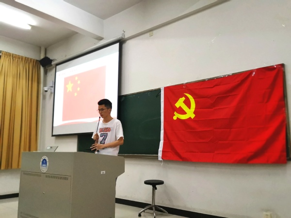 最后,大会进行最后一项,全体面对党旗宣誓。支部大会主持人向在场党员,预备党员,发展党员寄语,希望他们能以正式党员的标准要求自我,担当民族复兴的重任。