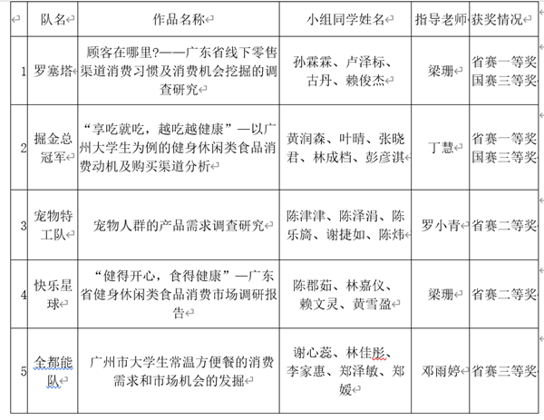 本网讯(记者 邓雨婷)为提高大学生创新和实践能力,培养创新型、应用型统计学科人才,我院领导积极鼓励经院学子参与“正大杯”第十一届全国大学生市场调查与分析大赛,4月下旬,广州城市理工学院伟德国际1949始于英国代表团共有5支参赛队伍闯入广东省决赛,获得特等奖3项,一等奖2项,二等奖2项,三等奖1项,其中获得一等奖的2支推荐国家三等奖的优异成绩,打破了我校往年的获奖记录,在这热烈祝贺伟德国际1949始于英国五支队伍勇创佳绩,为校争光。