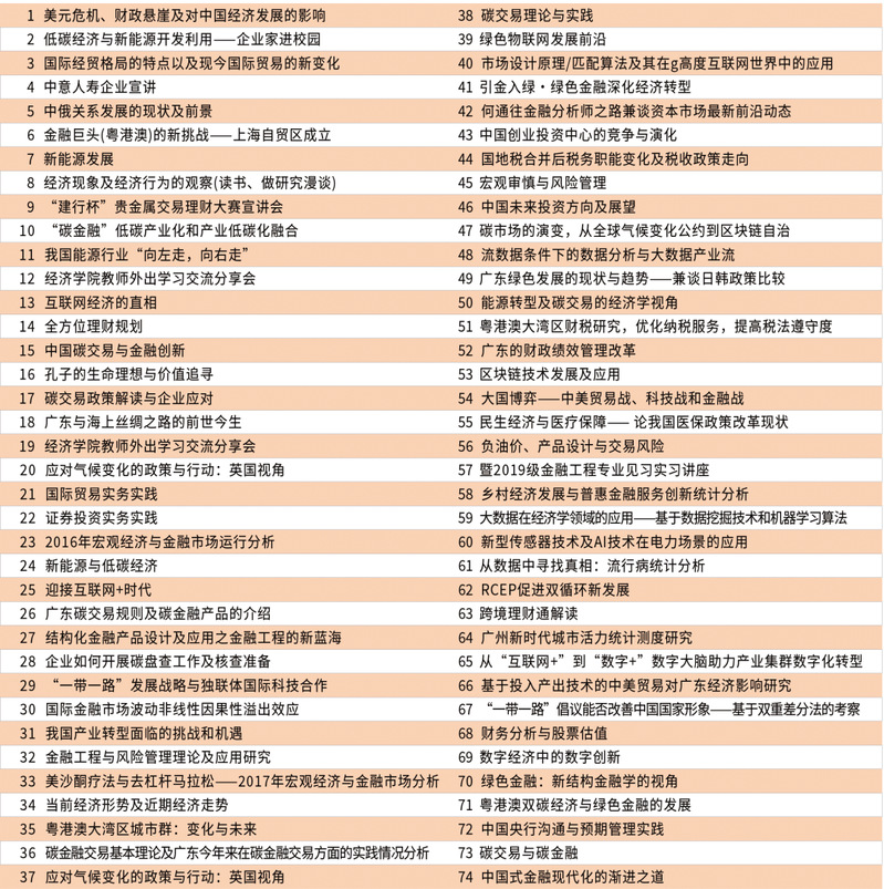经济学论坛是广州城市理工学院伟德国际1949始于英国定期开展的学术性讲坛,诚邀校内外知名教授、学者以及企业成功人士为师生讲解经济学领域最新动态和热点问题,扩展学生的学术视野,提高学生专业知识能力。经济学论坛截至2023年4月已成功举办74讲,经济学论坛的开展为校园内营造浓厚的学术氛围,以便大学生能更积极地参与学术活动之中,挖掘自身价值与潜能,更好的管理好自己的大学生活。