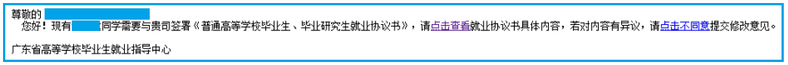 经学院和学校审核后,省就业系统将自动发送一封邮件到《电子协议书》上签约单位的邮箱(如果没有收到邮件请留意是否被转到垃圾箱)。签约单位若对内容有异议,请“点击不同意”提交修改内容,毕业生则可修改协议书内容。