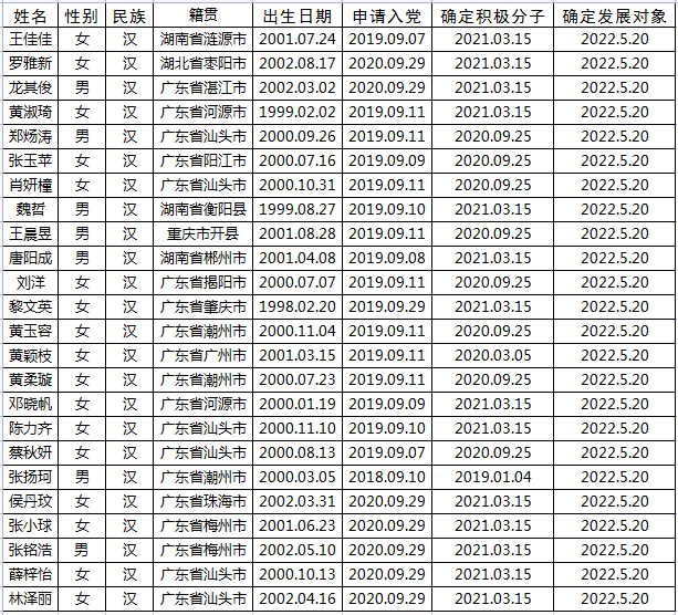 经支部委员会研究,近期拟召开党支部大会,拟接收王佳佳、罗雅新、龙其俊等24名同志为中共预备党员。现将基本情况公示如下: