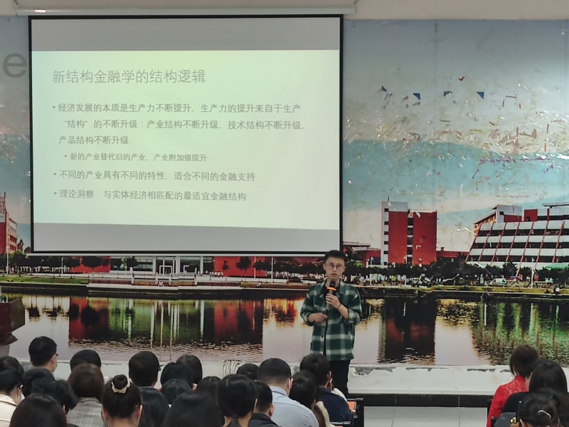 张一林教授从中西方金融着手,讲到中国银行的规模体系之大以及中国股票总市值之高接入中国金融如何从过去的“一穷二白”到如今“高富帅”这个话题。他为同学们讲解了如何理解中国金融的全新框架——新结构金融学。他认为新结构金融学的结构逻辑是经济发展的本质,即生产力不断提升。张教授也谈到了如何理解中国金融改革的渐进之道,他表示严监管的前提是提升国有企业的自生能力,而提升路径则包括双轨、渐进式经济改革、发展劳动密集型产业、快速积累资本、提升要素禀赋等结构,渐进式改革是长期主义、耐心主义的务实选择。