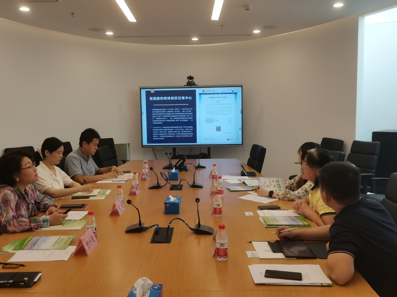 在海南国际碳排放权交易中心,海南国际碳排放权交易中心有限公司副总经理张潇带领其核心团队热情接待了我校一行,并详细介绍了中心的组织架构、发展历程、运作机制以及国际定位碳交易核心业务范围和战略目标。她表示,海南国际碳排放权交易中心是中国唯一的国际定位碳交易平台,重点引入国内外碳交易产品,吸引境内外碳资产交易汇聚海南,协同绿色金融发展过程中,中心对碳金融、碳相关专业人才的需求越来越迫切,希望与学院、基地科研项目共建,从应用型人才培养、产教融合、毕业生实习就业等方面进行深度合作。杨星希望链接双方资源,共同开展“双碳”领域科学研究,推动绿碳与蓝碳新发展。会后,可持续发展与ESG项目高级总经理李雨燃介绍了ESG项目的产品开发、技术支持、客户对接、项目推进等服务,表达了与我校合作开展ESG项目培训、低碳经济咨询报告等合作的意愿,助力企业向绿色低碳转型,真正做到产学研紧密结合。
