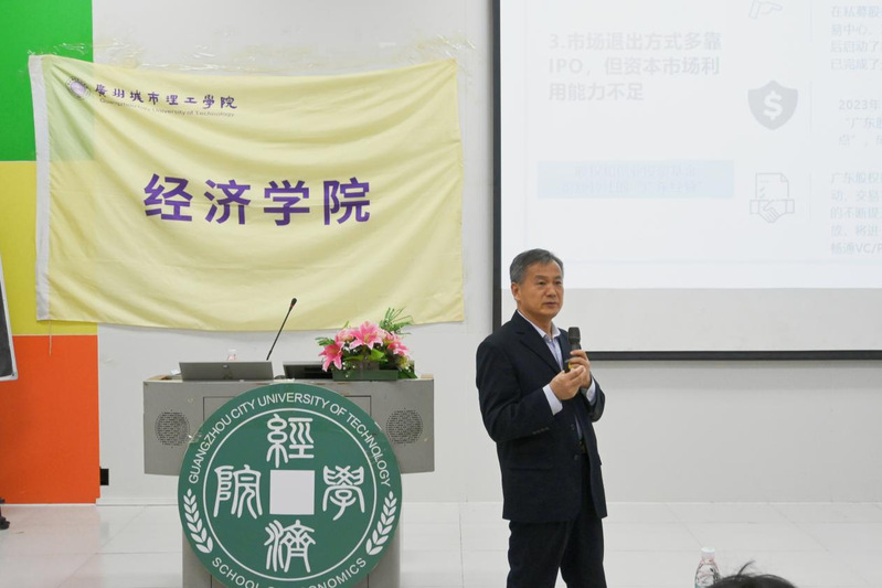 讲座中,张留禄教授围绕金融支持科技创新发展分享了广州在科创金融领域的努力与成果并提出广州虽然在不断加强政策延续性与稳定性,但仍面临系统设计不足等问题。张教授提出,广州应推动科技、产业、金融的良性循环,进一步优化创新链条的全面设计和金融产品服务。