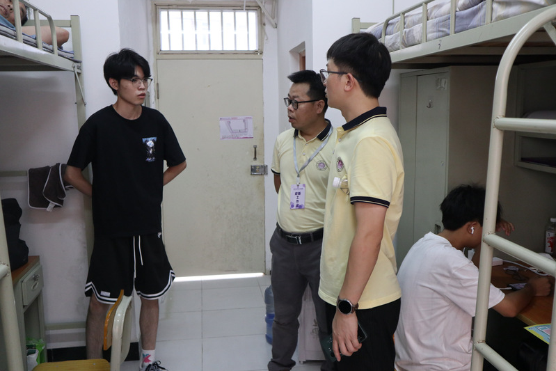 走访过程中,学院领导对2024级新生就读广州城市理工学院表示欢迎,任远书记和各位老师与新生们亲切交流,了解学生情况,询问踏入大学校园的感受如何以及对学校的宿舍是否适应,并仔细查看宿舍各种设施是否完善。在交流中,任远书记鼓励新生们尽快调整状态,适应大学生活,同时向新生们提出以下几点要求:一、做好学习规划,树立学习目标,不能旷课,不要迟到;二、多运动,增强身体素质;三、要做好个人防护,掌握反诈技巧,增强安全防范意识和自我保护意识;四、积极融入大学生活,选择性参加学生组织,提升综合素质;五、注意寝室用电安全、杜绝隐患,共同营造舒适温馨的宿舍环境;六、加强与班主任、辅导员的沟通交流,有困难及时寻求帮助。