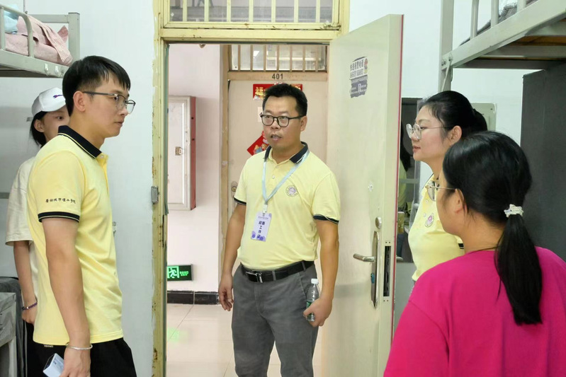 伟德国际1949始于英国领导与2024级全体辅导员、班主任走访新生宿舍(张欣茹 摄)