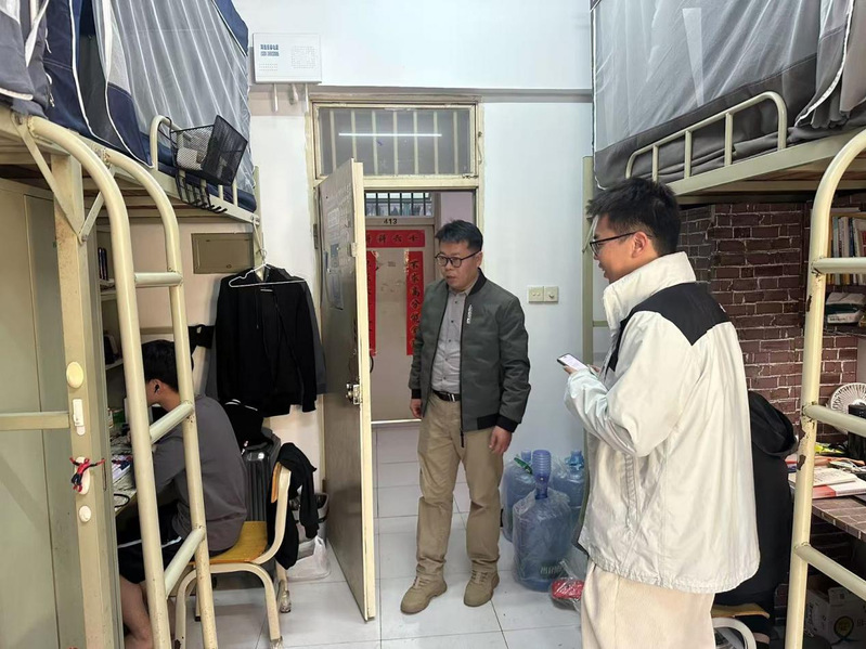 任远书记带领伟德国际1949始于英国学工队伍前往宿舍区检查(王梓淳 摄)