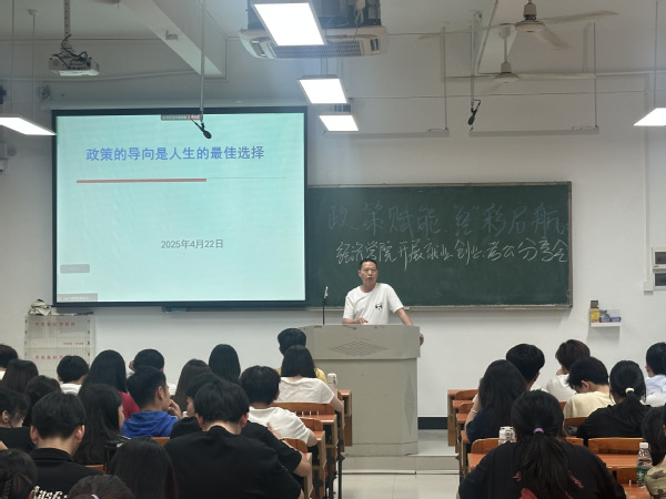 刘本军科长结合自身丰富经验,围绕实习实践、就业创业、考研考公、征兵入伍、西部计划、三支一扶、乡村教师等多个毕业生关注的方向展开分享。他以深入浅出的讲解和生动具体的案例,宣传自主创业先进个人典型事迹,详细解读高校毕业生可享受的就业创业补贴、创业担保贷款、基层就业补贴、就业见习补贴等政策。刘本军强调,优质的实习经历是大学毕业生求职就业的关键优势,鼓励同学们积极充实履历,自信迎接职场挑战;同时,熟悉就业创业政策是落实就业优先战略、促进创业带动就业的重要保障,希望同学们夯实专业基础,全面提升自身能力。