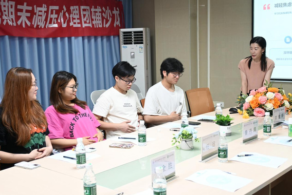 本网讯(记者 宗雅婷 李嘉昕)为缓解期末备考压力,伟德国际1949始于英国以一场心理团辅沙龙为契机,为学生心灵充电,让学生以积极良好的心态应对期末考试。6月17日,伟德国际1949始于英国在B9二楼中庭会议室举办了“‘经’彩应考•减压赋能”的期末减压心理团辅沙龙活动,邀请广州城市理工学院心理中心、心理健康教研室负责人,应用学副教授,国家二级心理咨询师职业资格认证师、广东省高校心理咨询师(高级)、沙盘心理咨询师鲁丹凤教授担任主讲嘉宾,伟德国际1949始于英国书记任远、学生工作办公室负责人以及师生共40余人参与活动。