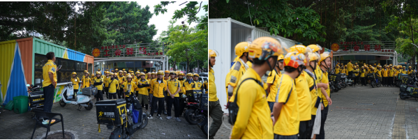 珠海市香洲区翠香街道工会驿站(银桦路站)内气氛热烈,新业态从业者的例会在此召开。例会中强调交规安全宣导,同时对外卖配送员日常工作中的安全规范作出重点强调。暖蜂二队队长朱林锋指出:”每位队员必须将人身安全与交通规则放在首位,严格落实‘一单一送’的合理接单原则,避免因贪多求快导致骑行分神;配送途中务必全程使用非机动车道,严禁为图方便驶入机动车道;出车前必须细致检查电动车电池及制动系统,杜绝安全隐患;若遇小区因其他管理要求禁止进入,应主动配合规定,通过联系顾客协商放置指定位置,绝不可强行冲卡。”朱队长表示,希望通过常态化安全督导,进一步强化队员的安全意识,确保配送服务高效与安全并行。